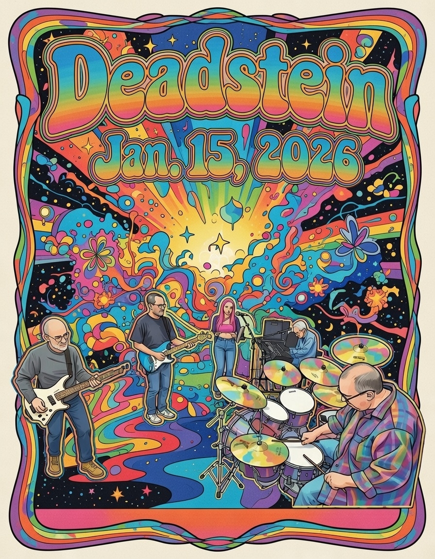 Heartfelt thanks to Pink Alisa for her harmonies, Larry, Kevin, Rich, and Lee for their passion. To Bob Weir: thank you for the music, the lessons, the life. Deadstein endures because of legends like you.